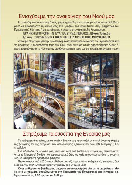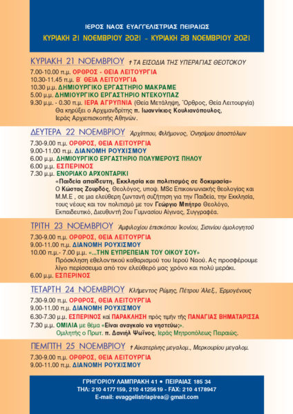 Κυκλοφόρησε η εβδομαδιαία ενημερωτική έκδοση του Ιερού Ναού Ευαγγελιστρίας Πειραιώς “Νέα Ενοριακή”.