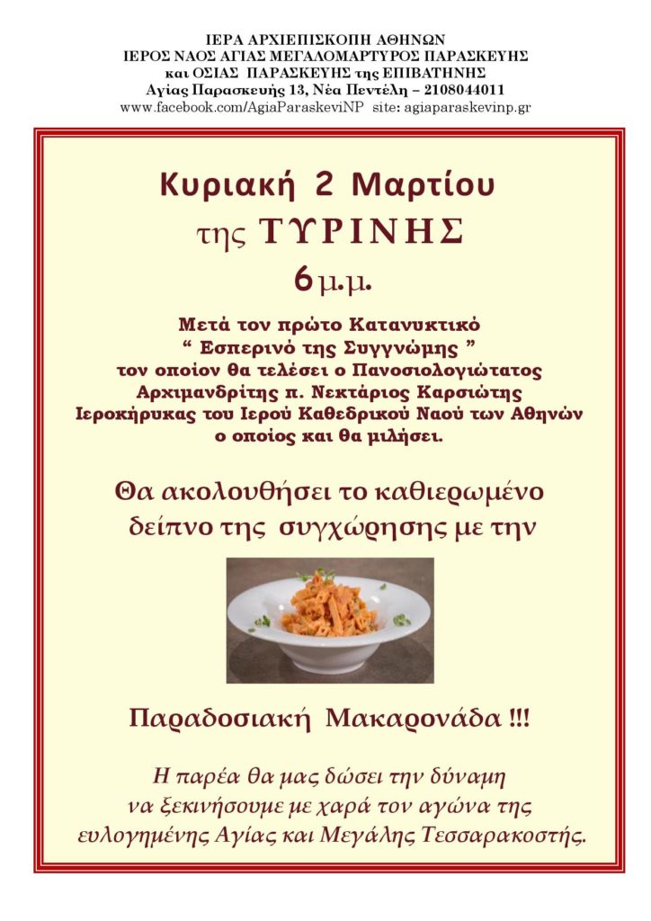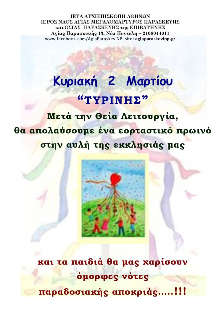 Κυριακή της Τυρινής στην Αγία Παρασκευή Νέας Πεντέλης