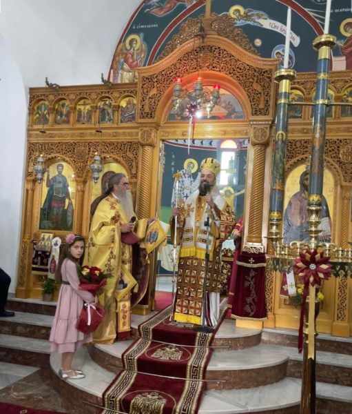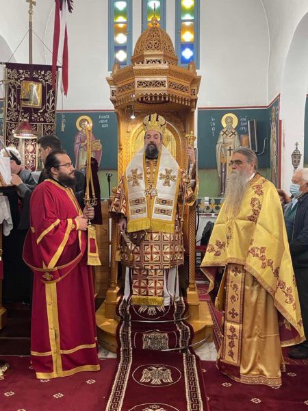 Στο τέλος της θείας Ευχαριστίας ο εφημέριος της ενορίας π. Σπυρίδωνας Δολιανίτης και ο πρόεδρος της κοινότητας κ. Αρτέμιος Καφούρος καλωσόρισαν τον Σεβασμιώτατο στην πρώτη του επίσκεψη στο Βουρβούλο.