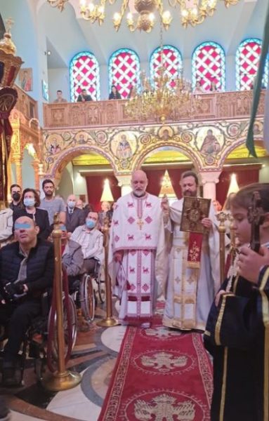 Με τον πλέον πανηγυρικό τρόπο άνοιξε η εορταστική εβδομάδα της πανηγύρεως των Ισαποστόλων και Θεσσαλονικέων Αγίων Κυρίλλου και Μεθοδίου, στον φερώνυμο Προσκυνηματικό Ναό στη Θεσσαλονίκη καθώς την Κυριακή του Παραλύτου 7 Μαΐου 2023 δεκάδες παιδιά παιδιά ΑμεΑ, συνοδευόμενα από την Ομάδα Φίλων ΑμεΑ παρακολούθησαν τη Θεία Λειτουργία.