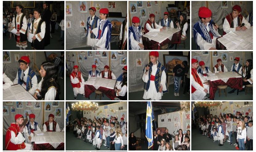 Τα παιδιά των κατηχητικών όλων των βαθμίδων με την βοήθεια και καθοδήγηση των Ιερέων της Ενορίας, πατρός Ανθίμου και πατρός Στεφάνου, καθώς και της κατηχήτριας κας Αθηνάς Γερμάνη, με ποιήματα, με θεατρικά δρώμενα και με συγκινητικά και γεμάτα παλμό τραγούδια, ταξίδεψαν τους παριασταμένους πίσω στα δύσκολα χρόνια της Τουρκοκρατίας και στα ένδοξα χρόνια του Αγώνα, ο οποίος οδήγησε την Πατρίδα στην πολυπόθητη Ελευθερία.