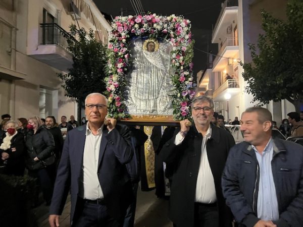 Με τη λιτανεία της Εικόνας της Προστάτιδας του Πυροβολικού στους δρόμους της Δάφνης ολοκληρώθηκαν το απόγευμα της Δευτέρας 4 Δεκεμβρίου 2023, οι λατρευτικές εκδηλώσεις στην πανηγυρίζουσα Ενορία της Αγίας Βαρβάρας.