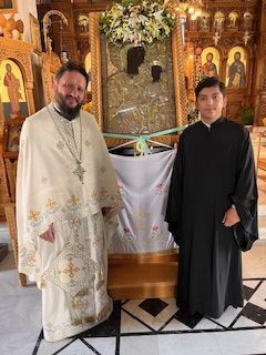 Το ιερό αναλόγιο διακόνησαν με τάξη και κατάνυξη ο κ. Δημήτριος Γεωργούλας και ο αναγνώστης κ. Θωμάς Χαντζής, συμβάλλοντας στην πνευματικότητα της Ακολουθίας μέσα από την ιεροπρεπή υμνωδία της Εκκλησίας μας.