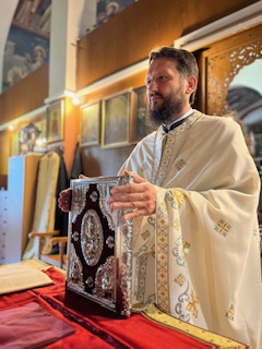 Της ιεράς Ακολουθίας του Όρθρου και της πανηγυρικής Θείας Λειτουργίας προεξήρχε ο Πανοσιολογιώτατος Αρχιμανδρίτης π. Τιμόθεος Τσισπαλίδης, εκ της Ιεράς Μητροπόλεως Φλωρίνης, προϊστάμενος του Ιερού Ναού Αγίου Στεφάνου και Αγίας Παρασκευής Επιβατινής Πτολεμαΐδος, κομίζοντας την ευλογία της τοπικής του Εκκλησίας και χαρίζοντας πνευματική παρηγορία στους πιστούς.