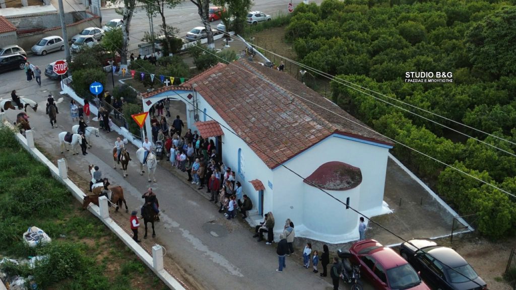 Με ιδιαίτερη θρησκευτική λαμπρότητα το εκκλησάκι του Αγίου Γεωργίου στα Λευκάκια Ναυπλίου γιόρτασε τον Άγιο με άλογα και περιφορά της εικόνας, θυμίζοντας τον τρόπο που το έκαναν οι παλαιοί κάτοικοι της περιοχής, Τετάρτη 22 Απριλίου 2026. Την παραμονή της εορτής, οι καμπάνες της εκκλησίας χτύπησαν χαρμόσυνα.