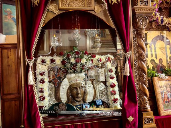 Παίρνοντας χώμα, που είχε ποτιστεί με το αίμα τους, και κερί έφτιαξε τη μορφή του «Ταξιάρχη», όπως πρόλαβε να την αντικρίσει. Σήμερα βλέπουμε μόνο το κεφάλι και όχι ολόκληρο το σώμα, όπως το είχε φτιάξει ο μοναχός.
