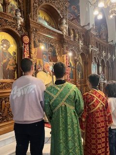 Το δεξιό ιερό αναλόγιο λάμπρυνε με ευπρέπεια και κατανυκτική παρουσία ο κ. Δημήτριος Παπαβασιλείου, πλαισιωμένος από τον κ. Νικόλαο Κακλάμανο, ενώ το αριστερό αναλόγιο τίμησε με τη γλυκύτητα της ψαλτικής του ο κ. Δημήτριος Κουρπαδάκης.