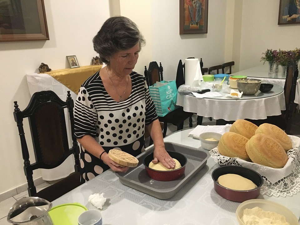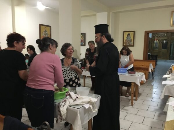 Η ευσεβέστατη ενορίτισσα κα Δήμητρα Λαμπρινάκου για άλλη μία χρονιά προσφέρθηκε να διδάξει τον τρόπο και τα μυστικά της παρασκευής του προσφόρου, ενώ παρευρέθησαν αρκετές κυρίες της ενορίας, αλλά και από άλλες περιοχές, για να μάθουν να παρασκευάζουν αυτόν τον ευλογημένο άρτο που προορίζεται να γίνει Σώμα Κυρίου στη Θεία Λειτουργία.