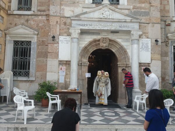 Νωρίτερα, ιδιαίτερα μεγάλη και συγκινητική ήταν η προσέλευση στο Ποτήριο της Ζωής από το μέγιστο αριθμό των εκκλησιαζομένων για ικανή ώρα με απόλυτη τάξη και πειθαρχία… Ξεχωριστά ήταν τα βιώματα της συγκινησιακής φόρτισης, κατάνυξης, δακρύων χαράς και λαχτάρας για τη θεία Μετάληψη των πιστών στο μνημειακό Ναό της Μεγάλης Παναγίας – Αγίου Δημητρίου Θηβών, ξεπερνώντας κάθε προσδοκία με την προσευχόμενη παρουσία και συμμετοχή τους…