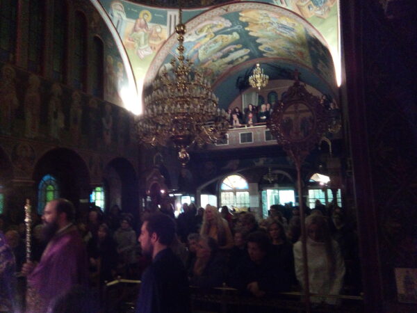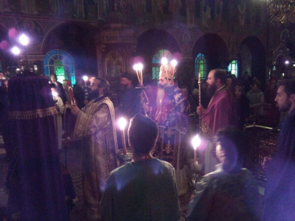 Με το πέρας της έξοχης αυτής κατανυκτικής λειτουργίας, που μας ανέτεινε ψυχικά στις γκρίζες και άνυδρες πολιτισμικά μέρες μας, ο ηθικά ευγενής Επίσκοπος κ.κ. Συμεών, αφού πρωτίστως διαβίβασε το έμπλεο αγάπης μήνυμα του Αρχιεπισκόπου Αθηνών και πάσης Ελλάδος κ.κ. Ιερωνύμου, μας κάλεσε να εγκολπωθούμε το θείο μήνυμα της μεγάλης ημέρας της Ορθοδοξίας μας και να γίνουμε Χριστοτόκοι. Να γεννήσουμε τον Χριστό δηλαδή στην ψυχή μας και να γίνουμε ιμάντες μεταφοράς, του πανανθρώπινου μηνύματος της Αγάπης του. Μιας αγάπης όμως τόνισε ο κ-ος Συμεών – ο εμπνευσμένος αυτός επίσκοπος, που λάμπρύνει με τα ήθος του την ελλαδική εκκλησία – όχι ιδιοτελούς και σκόπιμης, που την υπαγορεύουν συμφέροντα, αλλά άδολης και ανυπόκριτης. Μας ευχήθηκε Χρόνια Πολλά, εκφράζοντας και την ηθική του χαρά, που λειτούργησε στο «σπίτι» του, στον ναό του Αγίου Φανουρίου, στον οποίο ιερουργούσε επι τετραετία και μας υπέμνησε η ταπεινή και σεμνή πορεία του Ιησού, να φωτοδοτεί την ζωή μας ! Ήταν μια ατίμητη φιλοκαλλική εμπειρία, που μας δρόσισε ηθικά, στις δύσκολες μέρες μας.