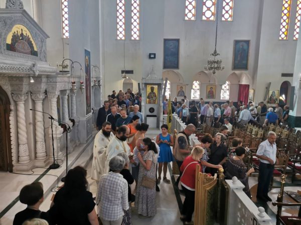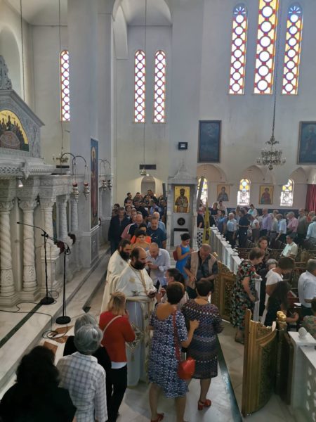 Πριν την απόλυση οι ιερείς ανέγνωσαν ευχές για τις δυσκολίες που αντιμετωπίζουμε. Τόσο για ενίσχυση γι αυτούς που υπομένουν τις συμφορές, (πλημμύρες, φωτιές) όσο και για την ανάπαυση των ψυχών που έχουν χαθεί.