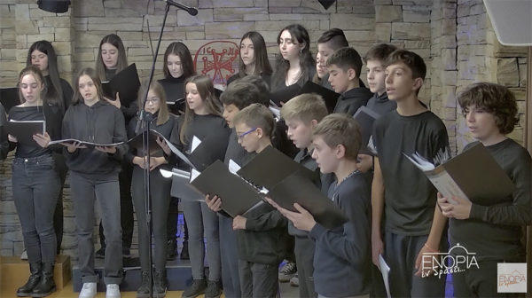 Ενώ, η μεγάλη χορωδία του Μουσικού Σχολείου, εμπλούτισε και χρωμάτισε την βραδιά, ερμηνεύοντας παραδοσιακά χριστουγεννιάτικα κάλαντα με σεβασμό στην ιστορία και τους τόπους προέλευσης τους.
