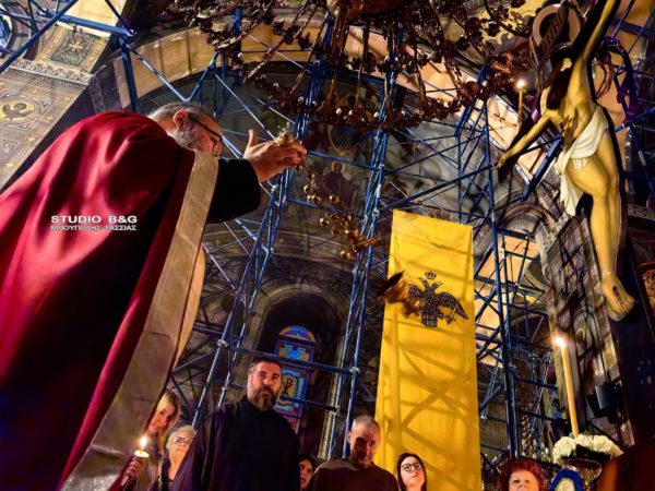 Σε κλίμα ευλάβειας και βαθιάς κατάνυξης, ντόπιοι και επισκέπτες του Ναυπλίου το απόγευμα της Μεγάλης Πέμπτης γέμισαν τους Ιερούς Ναούς της πόλης, για να παρακολουθήσουν την πορεία του Θεανθρώπου Ιησού Χριστού προς το σταυρικό μαρτύριο του Γολγοθά.