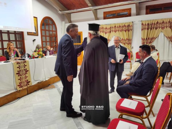 Την εκδήλωση παρακολούθησαν μεταξύ άλλων και απηύθυναν χαιρετισμό ο Πρόεδρος του Εκκλησιαστικού Συμβουλίου του Ιερού Ναού Ευαγγελιστρίας π. Ελευθέριος Μίχος, ο Δήμαρχος Ναυπλιέων Δημήτρης Κωστούρος και ο πρώην Περιφερειάρχης Πελοποννήσου Πέτρος Τατούλης, ενώ παρευρέθηκαν επίσης η Πρόεδρος του ΔΟΠΠΑΤ Μαρία Ράλλη και η π. Πρόεδρος του ΚΕΘΙ Σόνια Τάνταρου Κρίγγου.