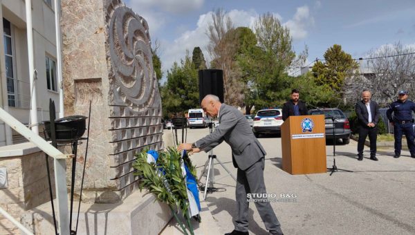 Αμέσως μετά έγινε Τρισάγιο και κατάθεση στεφάνων στο μνημείο πεσόντων Αστυνομικών κατά την εκτέλεση του καθήκοντος, που βρίσκεται στον αύλειο χώρο της Διεύθυνσης Αστυνομίας Αργολίδας και μετά το πέρας της τελετής ακολούθησε δεξίωση.