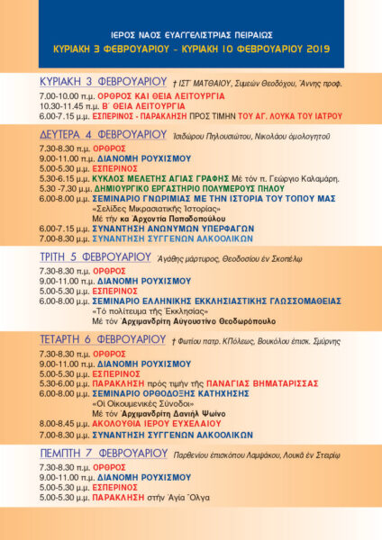 «Νέα Ενοριακή» (3 Φεβρουαρίου – 10 Φεβρουαρίου 2019)