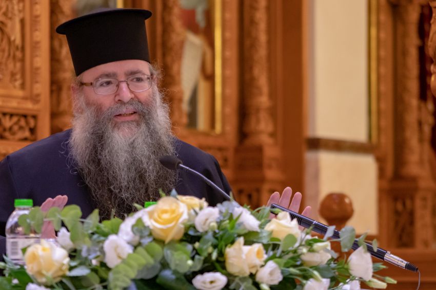 Ιδιαιτέρως τόνισε τον θυσιαστικό ρόλο που έχουν αναλάβει εφ’ όρου ζωής οι Πατέρες της Αγιοταφικής Αδελφότητος με προεξάρχοντα – Ηγούμενο τον Μακαριώτατο Πατριάρχη Ιεροσολύμων κ. Θεόφιλο Γ’. Οι ακρίτες αυτοί της πίστεως, αποτελούν τους φύλακες των Ορθοδόξων Προσκυνημάτων, τους λειτουργούς, ανακαινιστές και υπερασπιστές των δισχιλιετών Προσκυνημάτων, αποφασισμένοι να δώσουν και τη ζωή τους για την προάσπισή τους απέναντι σε κάθε επιβουλή.