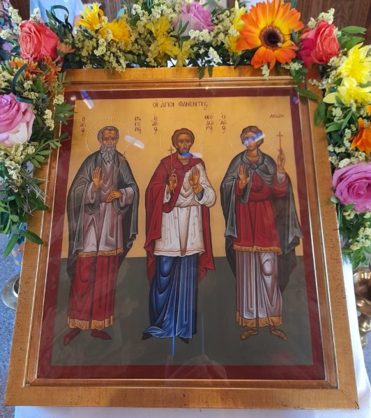 Με την πρέπουσα λαμπρότητα και τη συμμετοχή πολυάριθμων Κεφαλλήνων και άλλων φιλαγίων πιστών εορτάσθηκε σήμερα το πρωί στον Ιερό Ναό των Αγίων Τιμοθέου και Μαύρας Ν. Ερυθραίας Αττικής η μνήμη των εν Κεφαλληνία τριών ομολογητών αγίων Γρηγορίου, Θεοδώρου και Λέοντος, των και επικαλουμένων Αγίων Φανέντων, οι οποίοι είναι οι παλαιότεροι άγιοι στην εκκλησιαστική ιστορία του μεγαλύτερου νησιού του Ιονίου.
