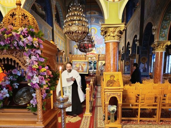 Την Δευτέρα 16 Φεβρουαρίου 2026, τελέστηκαν Όρθρος και Θεία Λειτουργία από τον αυτό κληρικό, ενώ το απόγευμα ψάλθηκε Παράκληση της Παναγίας από προσκυνητή κληρικό. Με το πέρας της παρακλήσεως έγινε γνωστή, η μετά ολιγοήμερη ασθένεια κοίμηση του ενορίτου κληρικού, Αρχιμανδρίτου Ειρηνάρχου Θεοδώρου.