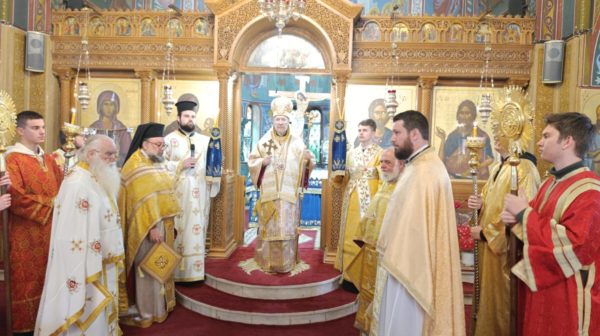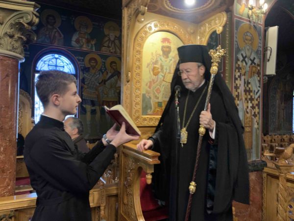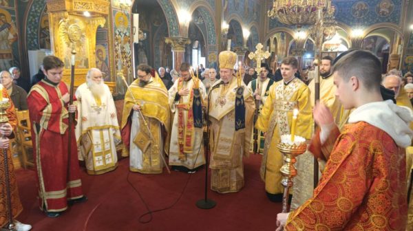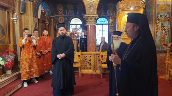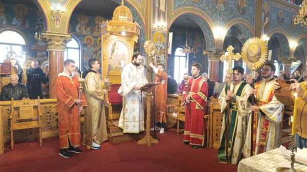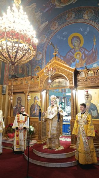 Ο Επίσκοπος χοροστάτησε στον όρθρο, τέλεσε το μυστήριο της Θείας Ευχαριστίας και προεξήρχε λιτανείας εντός του ναού λόγο της κακοκαιρίας και δεήσεως υπέρ των εν Πολωνία Ορθοδόξων κληρικών και λαϊκών, προ του ιερού εικονίσματος της Παναγίας της επικαλουμένης Οστρομπράμσκα. Μαζί του συλλειτούργησαν οι εκ των κληρικών του ναού, Αρχιμανδρίτης Σεραφείμ Δημητρίου, Πρωτοπρεσβύτερος Λάμπρος Ξεσφύγγης και Οικονόμος Γεώργιος Βάρσος καθώς και ο πρωτοπρεσβύτερος Αθανάσιος Κολοκυθάς της Μητροπόλεως Φωκίδος και ο διάκονος Πέτρος Τσιάρας.