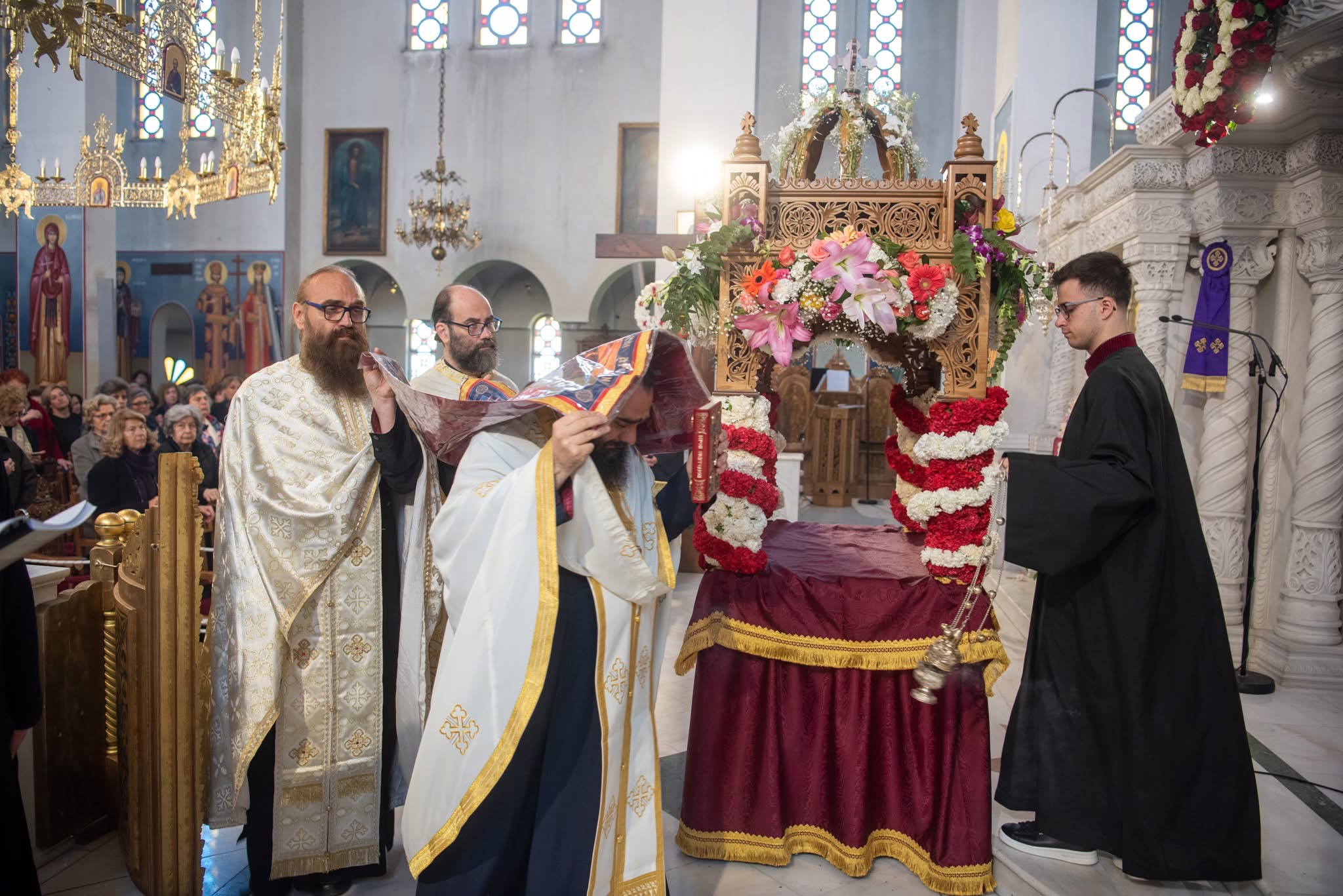 Οι πιστοί παρακολούθησαν με σιωπή και ταπείνωση την αποκαθήλωση του Εσταυρωμένου Κυρίου, ο οποίος, ως Νυμφίος της Εκκλησίας, εκουσίως προσέφερε τον εαυτό Του «υπέρ της του κόσμου ζωής και σωτηρίας».