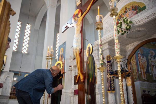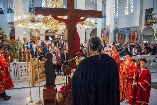 Σε κλίμα κατάνυξης και με την παρουσία πλήθους πιστών στον Ιερό Ναό Αγίου Φωτίου του Μεγάλου στη Νέα Παραλία Θεσσαλονίκης πραγματοποιήθηκε το πρωί της Μεγάλης Παρασκευής η ανάγνωση των Μεγάλων Ωρών και ο Εσπερινός της Αποκαθηλώσεως του αχράντου Σώματος του Κυρίου Ιησού Χριστού.