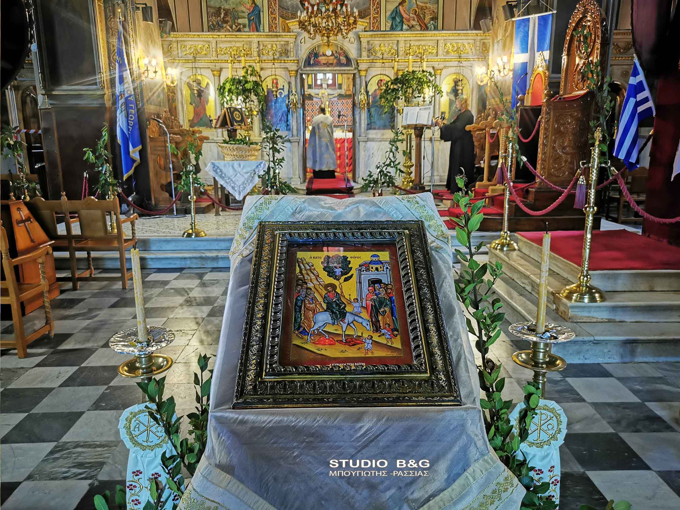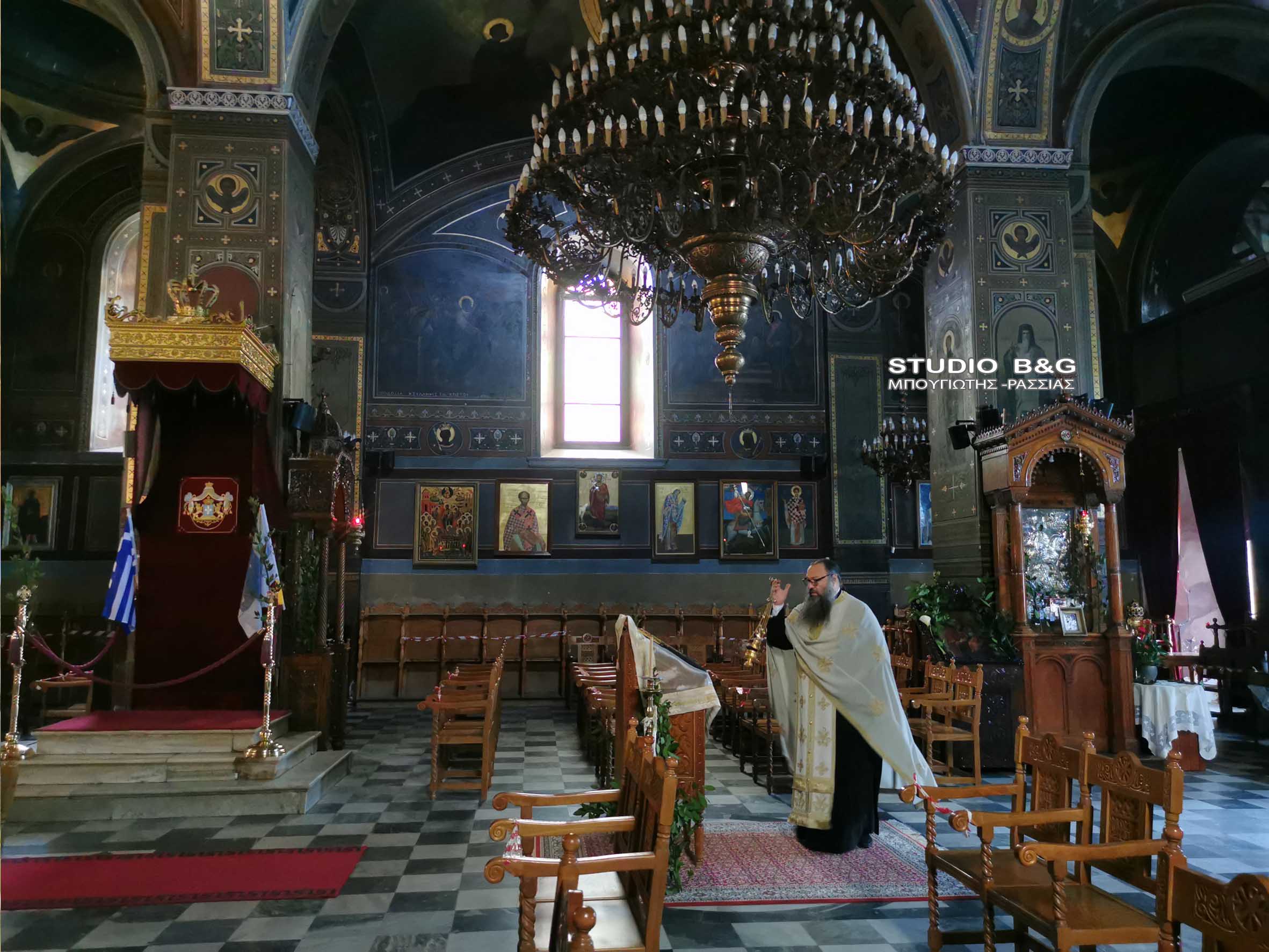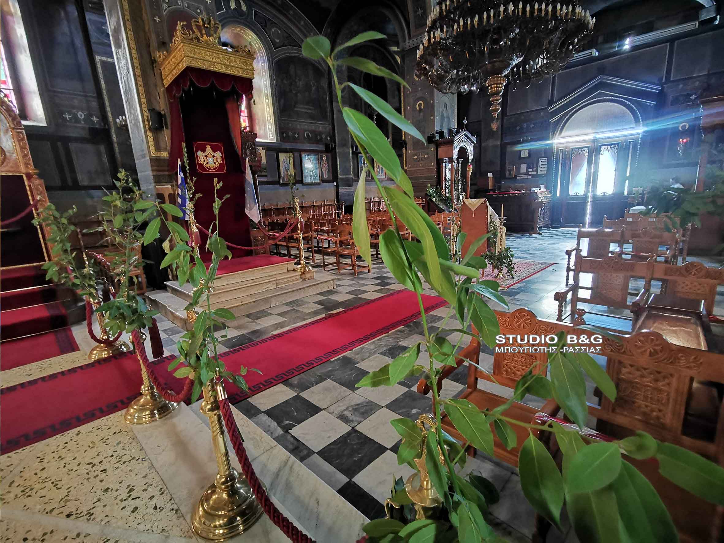 Τελέστηκε ο Εσπερινός των Βαΐων στον Μητροπολιτικό Ναό του Αγίου Γεωργίου στο Ναύπλιο το Σάββατο 24 Απριλίου 2021, παραμονή της μεγάλης εορτής κατά την οποία τιμάται η πανηγυρική είσοδος του Κυρίου Ιησού Χριστού στην Ιερουσαλήμ.
