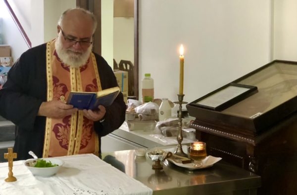 Ο Πρόεδρος του Ενοριακού Φιλοπτώχου Ταμείου, Πρωτοπρεσβύτερος Λάμπρος Ξεσφύγγης, τέλεσε τον αγιασμό της ενάρξεως με την παρουσία των εθελοντριών μαγειρισσών και άλλων στελεχών της διακονίας αυτής.