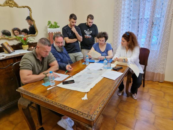 Προηγήθηκε επιμνημόσυνη δέηση στον τάφο της ιδιοκτήτριας Μαρίας Βαμβακά το γένος Ντζάθα, επί παρουσία και του ευρέτου του ακινήτου, διακόνου Δημητρίου Μπαρμπαρή.