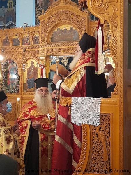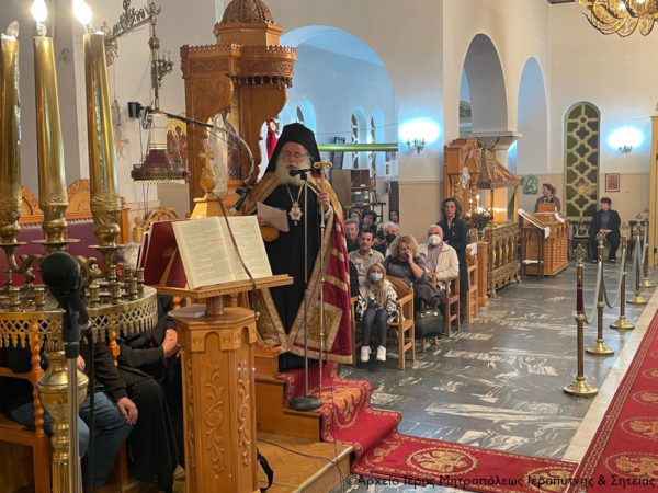 Ο Σεβασμιώτατος αναφέρθηκε στη ζωή, τα βασανιστήρια και στο μαρτύριο του αγίου Μηνά στην Αίγυπτο κατά τους διωγμούς του Διοκλητιανού και του Μαξιμιανού.