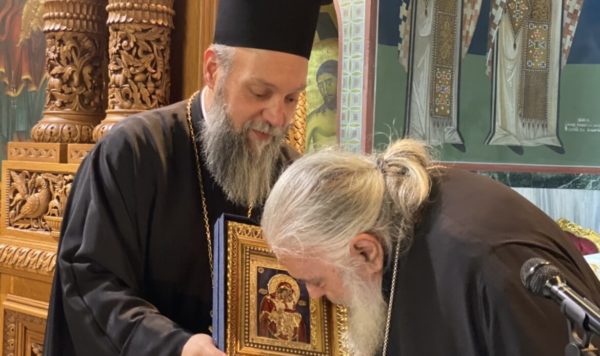 Στο τέλος της ομιλίας ο Προϊστάμενος του Ιερού Ναού Αρχιμανδρίτης π. Χριστόδουλος Κοτσίφης προσέφερε στον Σεβασμιώτατο κ. Ιωήλ, αντίγραφο της Παναγίας της Παρηγορητρίας εκ μέρους του Εκκλησιαστικού Συμβουλίου αλλά και όλης της Ενορίας.