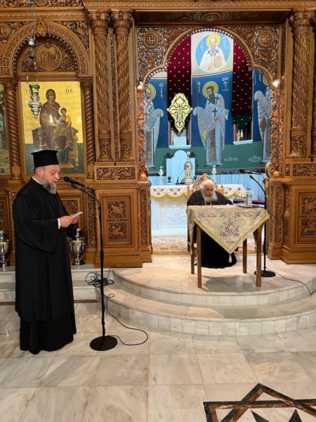Τον Σεβασμιώτατο παρουσίασε στους πιστούς ο Προϊστάμενος του Ιερού Ναού Πανοσιολ. Αρχιμ. π. Χριστόδουλος Κοτσίφης, ο οποίος του μετέφερε τις ευχές και τις ευχαριστίες του Σεβασμιωτάτου Μητροπολίτη Καισαριανής, Βύρωνος και Υμηττού κ. Δανιήλ για την αποδοχή της προσκλήσεώς του.