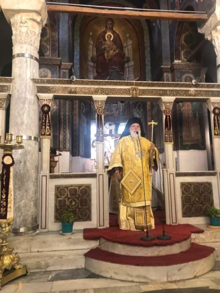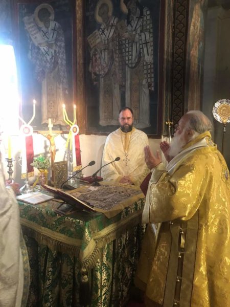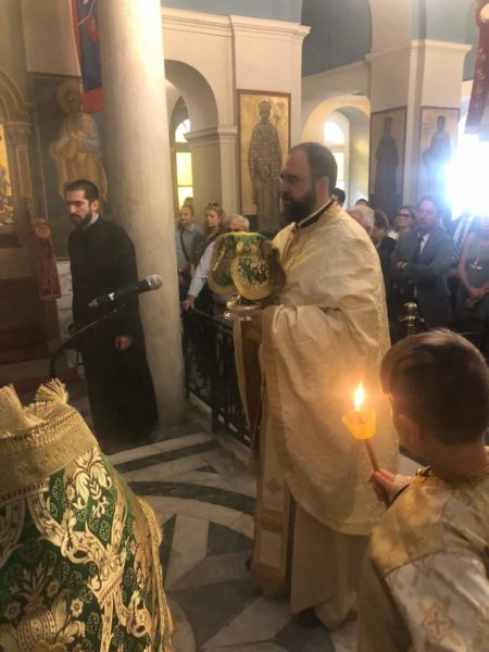 Στην αντιφώνηση του, ο προϊστάμενος του Ιερού Ναού, Αρχιμανδρίτης π. Ισίδωρος Κάτσος, Επίκουρος καθηγητής στη Θεολογική Σχολή του Πανεπιστήμιου Αθηνών, ευχαρίστησε τον Σεβασμιώτατο για την ευλογητή παρουσία του καθώς για πρώτη φορά από της ενθρονίσεώς του λειτουργεί στον Ιερό Ναό.