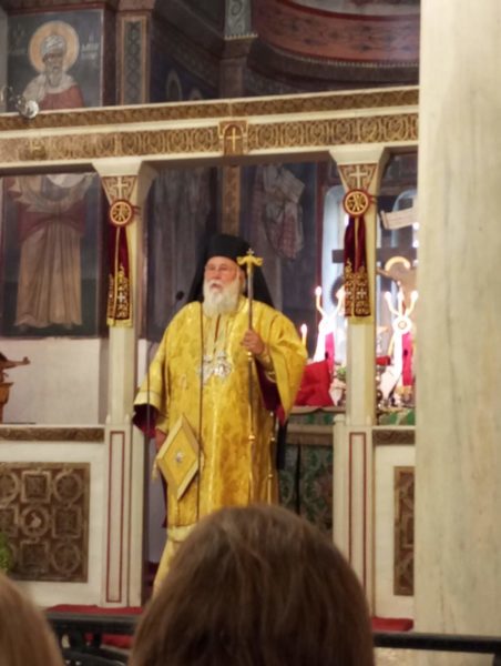 Κατά το κήρυγμα του θείου λογού ο Σεβασμιώτατος Μητροπολίτης κ. Νεκτάριος εστίασε στη χθεσινή Ευαγγελική περικοπή (Κυρ. Γ’ Λουκά 7:11-16), και μεταξύ άλλων τόνισε ότι: «το περιστατικό της ανάστασης του γιού της χήρας της Ναΐν μας προτρέπει να φιλοσοφήσουμε το μυστήριο του θανάτου… Ο σύγχρονος άνθρωπος είναι εν πολλοίς δεσμώτης του θανάτου καθώς φοβάται ότι θα στερηθεί τα υλικά και πρόσκαιρα αγαθά.