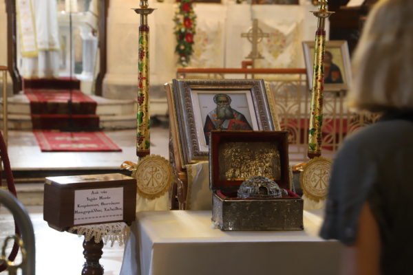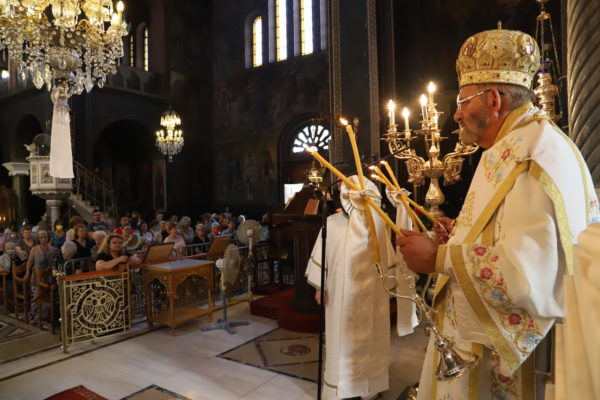 Το πρωί τελέστηκε Θεία Λειτουργία προεξάρχοντος του Μητροπολίτη Κρήνης κ. Κυρίλλου του Οικουμενικού Πατριαρχείου.