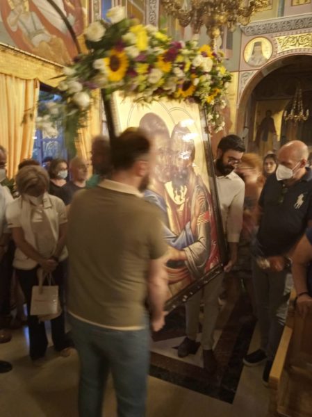 Ακολούθησε λιτάνευση των Ιερών Εικόνων των Αγίων Αποστόλων Πέτρου και Παύλου, καθώς και της Παναγίας της εκ Βρυούλων από την Μητρόπολη Βρυούλων του Οικουμενικού Πατριαρχείου.