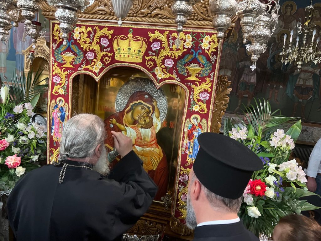 Στο τέλος της ομιλίας ο π. Χριστόδουλος του προσέφερε αντίγραφο της Ιεράς Εικόνος της Παναγίας της Παρηγορητρίας εκ μέρους του Εκκλησιαστικού Συμβουλίου και των πιστών της Ενορίας μας.