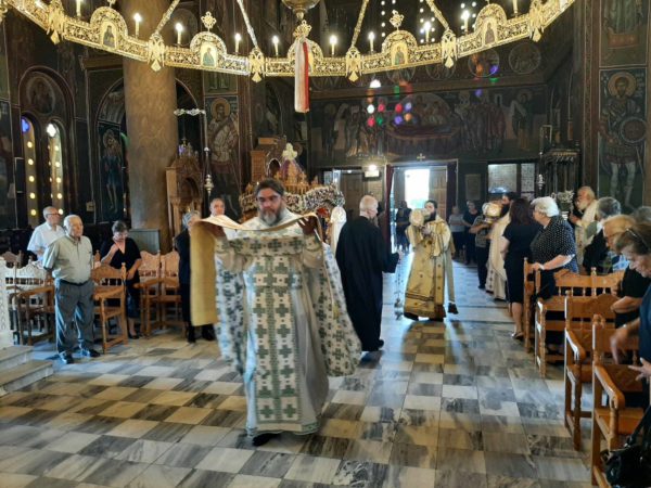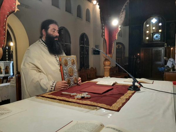 Με τον Σεβασμιώτατο Μητροπολίτη κ. Σεραφείμ συλλειτούργησαν οι Πανοσ. Αρχιμανδρίτες Παύλος Μπαραμπούτης, Εφημέριος Ιερού Ναού Αγίου Νικολάου Καλλιθέας Αρχιεπισκοπής Αθηνών, π. Νεκτάριος Ευγενικός, Ιεροκήρυξ Ιεράς Μητροπόλεως Χαλκίδος, ο Οικονόμος π. Ιωάννης Μπαραμπούτης, Εφημέριος του Ιερού Ναού και ο Διάκονος π. Σιλουανός Τζουμανέκας.