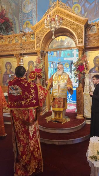 Στην Θεία Λειτουργία έλαβαν μέρος ο Αρχιμανδρίτης Σεραφείμ Δημητρίου, ο Πρωτοπρεσβύτερος Ιωάννης Μεταξάς και ο Διάκονος Χρυσόστομος Χατζηνικολάου, βοηθούμενοι από ουκρανούς και ενορίτες ιερόπαιδες. Ενώ συμπροσευχόμενος παρέστει και ο πρεσβύτερος Βασίλειος Ταξιαρχιώτης,