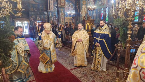 Νωρίτερα στο ναό της αγίας Μαρίνης, ο επίσκοπος Δημήτριος, είπε με συγκίνηση στην προσφώνηση του « όταν βγήκαμε έξω και είδα όλο αυτό το πλήθος, όλο τον κόσμο και ακούσαμε όλα αυτά τα ωραία λόγια συγκινήθηκα. Σήμερον είπαμε και ξαναείπαμε στις ευχές και αυτό το σήμερον αφορά γεγονότα προ δύο χιλιάδες χρόνια αλλά που εμείς οι ορθόδοξοι μπορούμε να τα ζούμε σήμερα» και κατέληξε ευχόμενος «Κάθε ευλογία από τον πανάγαθο Θεό»