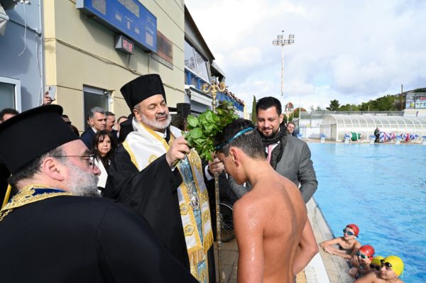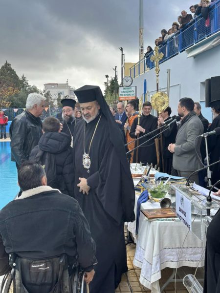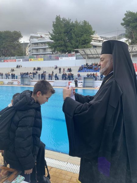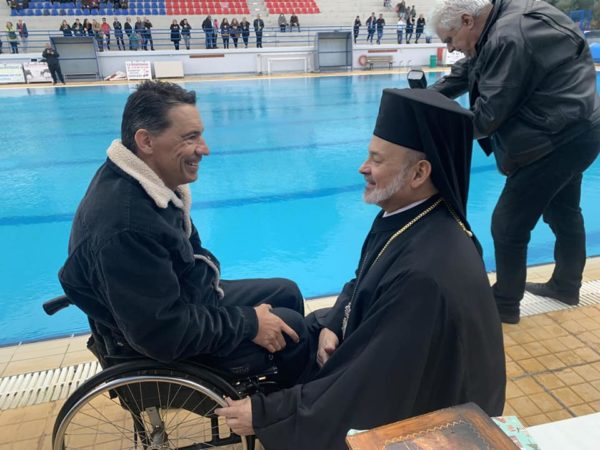 Και η ταπεινότητα εκείνης της στιγμής, συνεχίστηκε στο κολυμβητήριο της Ηλιούπολης, όπου όταν παρουσιάστηκε μπροστά στο σημείο της κατάδυσης ο παραολυμπιονίκης Ιωάννης Κωστάκης, για να δώσει και εκείνος μετάλλια σε κάποιους από τους κολυμβητές που έπεσαν για να πιάσουν τον Σταυρό, ο επίσκοπος γονάτισε μπροστά του για να τον χαιρετήσει και να του ευχηθεί.
