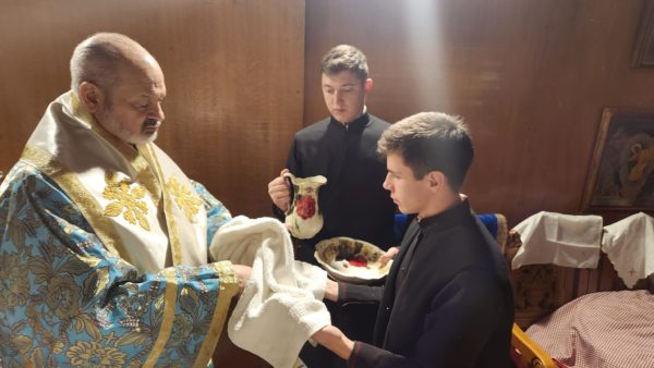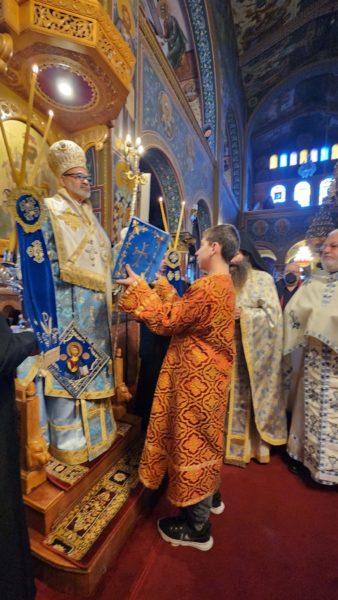Μετά την επιστροφή του επισκόπου στον ναό και καθ΄οδόν προς την εξέδρα τέλεσης του αγιασμού, ο αρχιμανδρίτης Σεραφείμ, ο οποίος προ του «μετά φόβου» είχε με νέα ανακοίνωση του προς το εκκλησίασμα πει, ότι δεν θα κατέβει τελικά στο παρεκκλήσι ο π. Ευσέβιος αλλά ο επίσκοπος και σχολίασε προς τον λαό το γεγονός, είπε προς τον επίσκοπο για την επιλογή του: «Πως θα μπορούσα να Σας πω όχι, όταν θυμάμαι, πριν χρόνια σε μια από τις τελευταίες λειτουργίες Σας στο Σικάγο, όπου ψάλαμε 40’ λεπτά, μέχρι να επιστρέψετε στο παρεκκλήσι του γηροκομείου, από τους θαλάμους όπου πήγατε και κοινωνήσατε έναν προς έναν τους κατάκοιτους τροφίμους του, για να τελειώσουμε την λειτουργία».