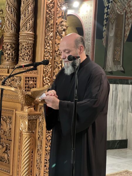Τον π. Αντίπα παρουσίασε στους πιστούς που είχαν κατακλύσει από νωρίς τον Ιερό Ναό, ο Προϊστάμενος του Ιερού Ναού, Πανοσιολογιώτατος Αρχιμανδρίτης π. Χριστόδουλος Κοτσίφης.