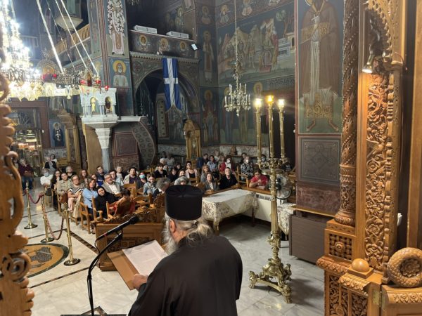 Άλλη μία εσπερινή σύναξη πραγματοποιήθηκε χθες, 11 Οκτωβρίου 2023, στον Άγιο Δημήτριο Νέας Ελβετίας Βύρωνος όπου στα πλαίσια των ΚΑ’ ΔΗΜΗΤΡΙΩΝ, τα οποία και φέτος είναι αφιερωμένα στο πρόσωπο της Παναγίας Παρηγορητρίας Της Δακρυρροούσης και Μυροβλυζούσης, αμέσως μετά τον Εσπερινό και την Ιερά Παράκληση στην Παναγία την Παρηγορήτρια και τον Άγιο Δημήτριο, μίλησε ο Οσιολογιώτατος Ιερομόναχος Γρηγόριος από την Ιερά Μονή Ξενοφώντος Αγίου Όρους , με θέμα: «Καρδίαν καθαρὰν κτίσον ἐν ἐμοί, ὁ Θεός».