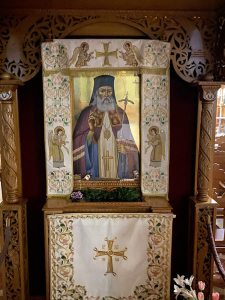 Οι πιστοί που συμμετείχαν στις ιερές Ακολουθίες είχαν την ευλογία να προσκυνήσουν το τεμάχιο του ιερού λειψάνου του Αγίου που είναι θησαυρισμένο μόνιμα στο Ναό, και να προσκυνήσουν το Παρεκκλήσιο που είναι αφιερωμένο προς τιμήν του, στον περίβολο του Ναού.