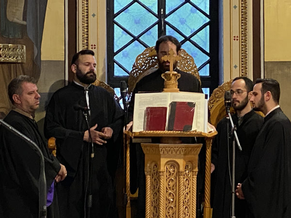 Έψαλλε βυζαντινός χορός υπό την διεύθυνση του Πρωτοψάλτη κ. Γεωργίου Ρισάνου.