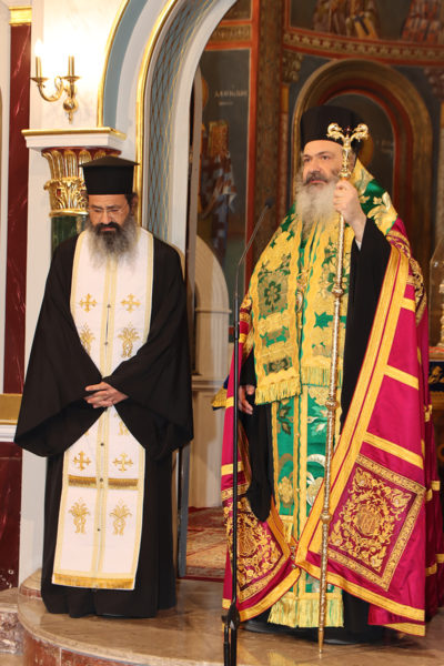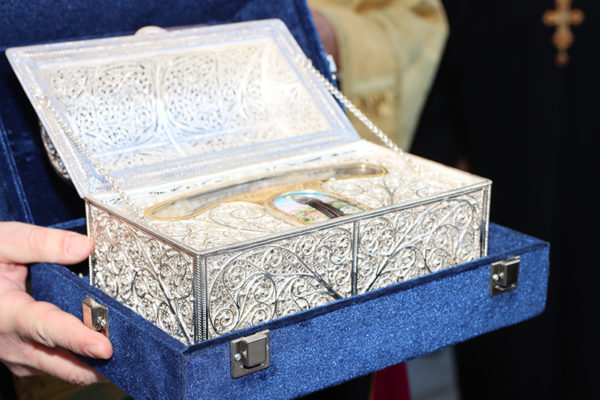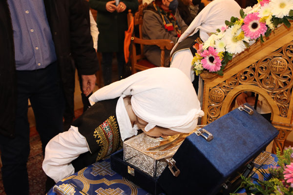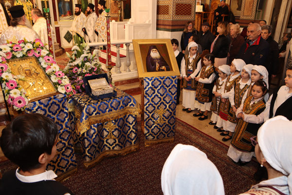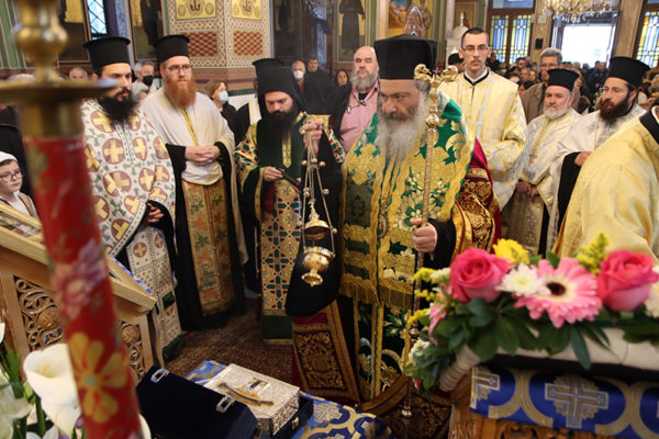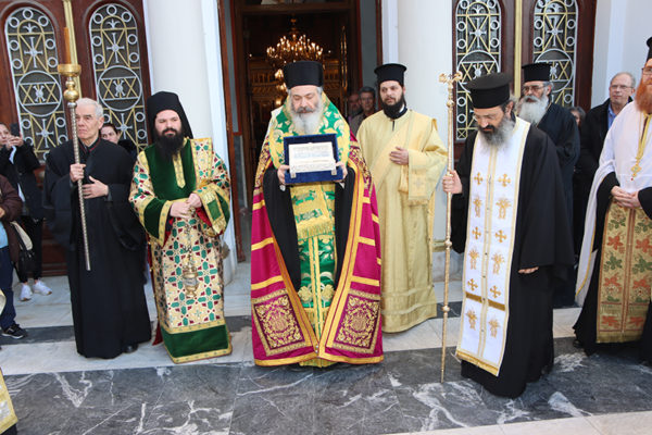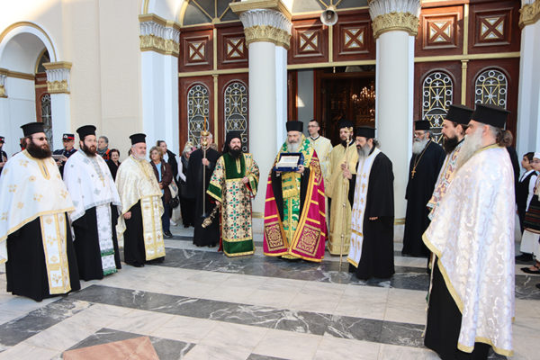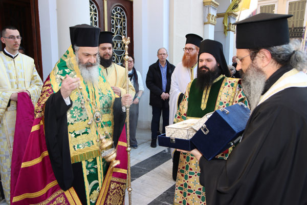 Ευχαρίστησε τέλος ο Θεοφιλέστατος, τον Σεβασμιώτατο Μητροπολίτη Θηβών και Λεβαδείας κ. Γεώργιο και τον Καθηγούμενο της Ιεράς Μονής Σαγματά Αρχιμανδρίτη π. Παΐσιο, που έδωσαν την άδεια για την μεταφορά του ιερού λειψάνου, καθώς και τον π. Σπυρίδωνα που μετέφερε «αυτόν τον θησαυρό».
