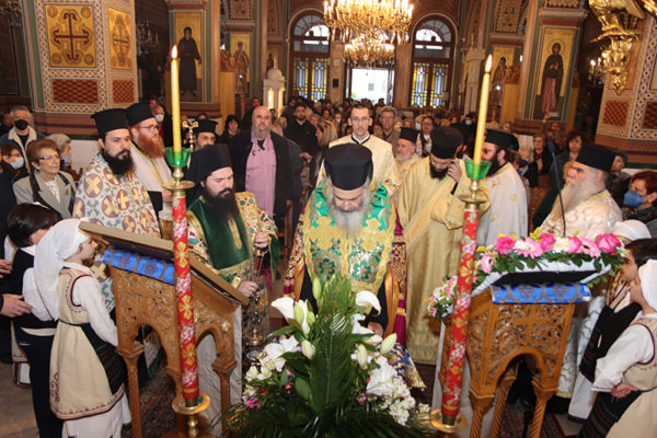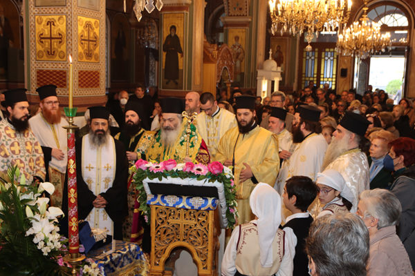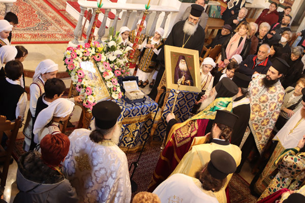 Ο Θεοφιλέστατος μετέφερε αρχικά στο εκκλησίασμα τις ευχές και ευλογίες του Σεβασμιωτάτου Μητροπολίτη Πειραιώς κ. Σεραφείμ. Σημειώνοντας στη συνέχεια πως μέσα σε αυτήν την υπέροχη περίοδο όπου διαβαίνουμε το στάδιο της αθλήσεως, έχουμε ανάγκη από τους αγίους μας να μας ενισχύουν για να μπορούμε να αγωνιζόμαστε και να προχωρούμε με θάρρος στην πνευματική μας ζωή.