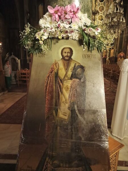 Ο στολισμός της Αγίας εικόνος του Αγίου Ελευθερίου, όπου τιμήθηκε σήμερα, 15 Δεκεμβρίου 2019, έλαβε χώρα από τους ευλαβείς συνεργάτες του Ι.Ν. Προφήτου Ηλίου Παγκρατίου.