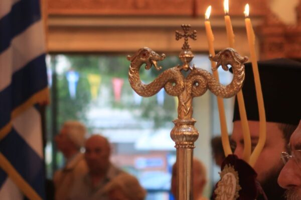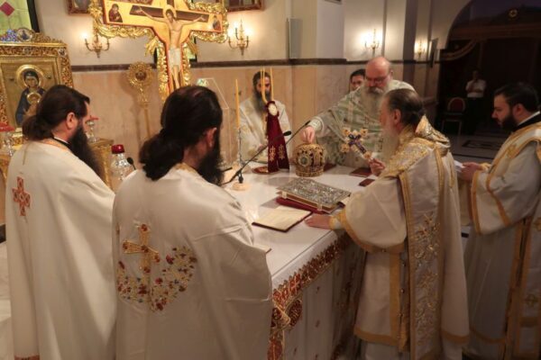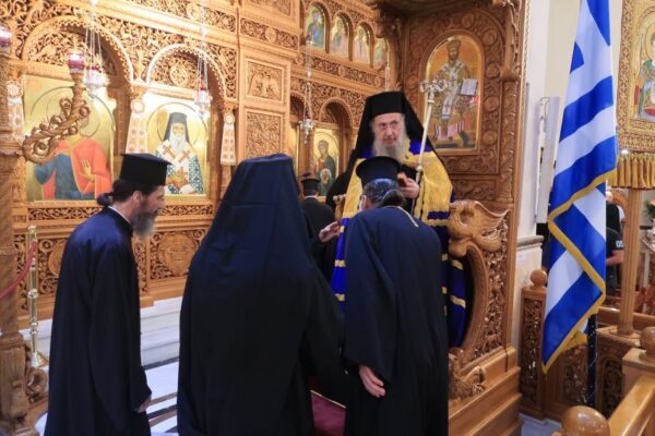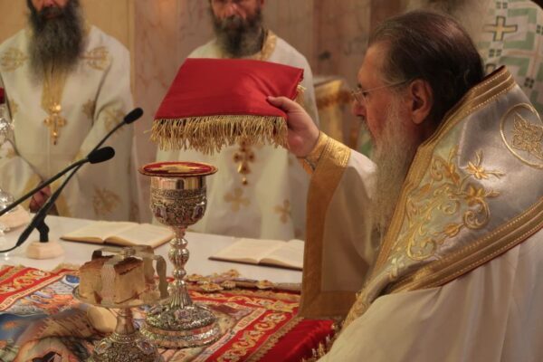 Ο Θεοφιλέστατος Επίσκοπος Θαυμακού και Καθηγούμενος της Ιεράς Μονής Ασωμάτων Πετράκη, κ. Ιάκωβος, ιερουργών, κατά την 20η Οκτωβρίου 2019, στον Ι.Ν. Αγίου Δημητρίου Ομωνύμου Δήμου.